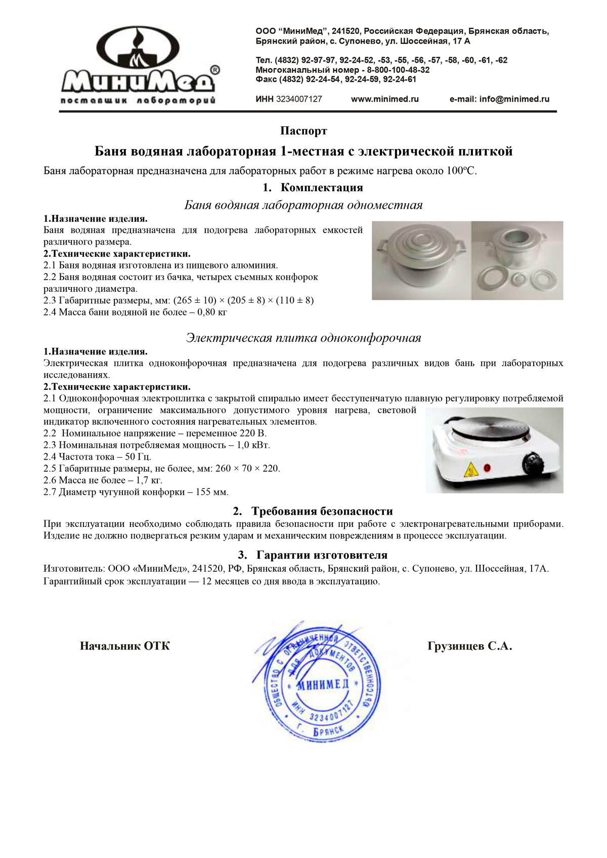 Баня лабораторная водяная 1-местная с электрической плиткой