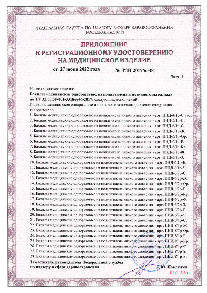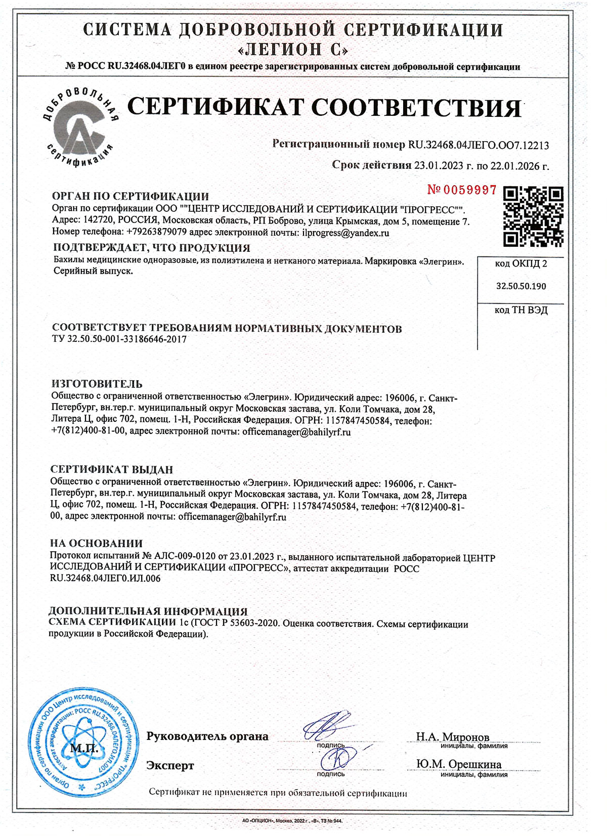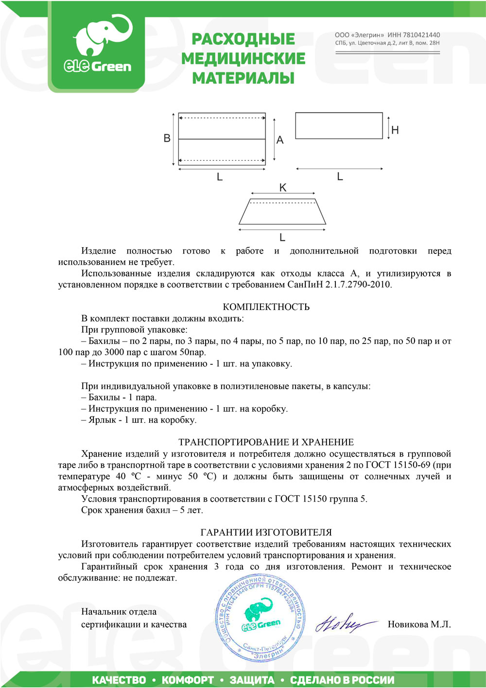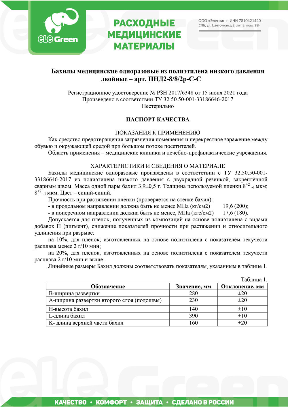 - Бахилы медиц. однор., из полиэтилена и нетканого материала. Элегрин. Сертификат