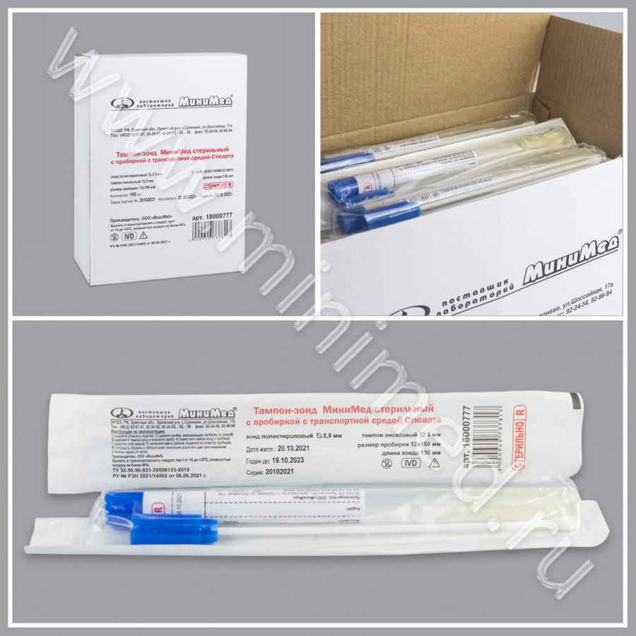 Тампон-зонд МиниМед стерильный с пробиркой с транспортной средой Стюарта,ТУ 32.50.50-031-29508133-2019, инд. уп./100/1000 шт
