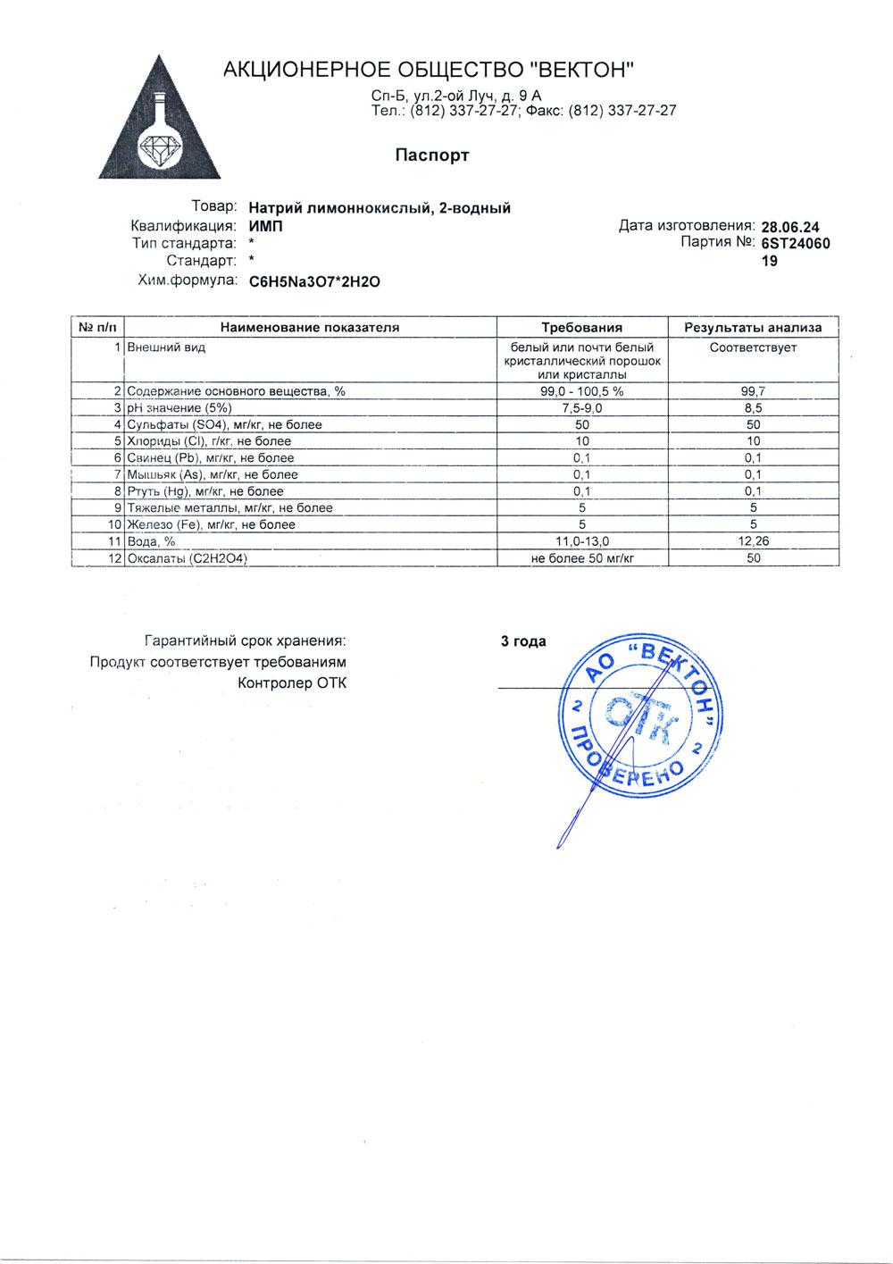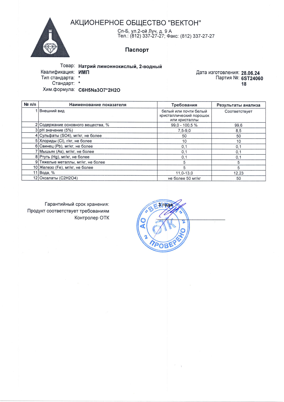 Натрий лимоннокислый 3-зам. 2--вод., имп. 0,5 кг