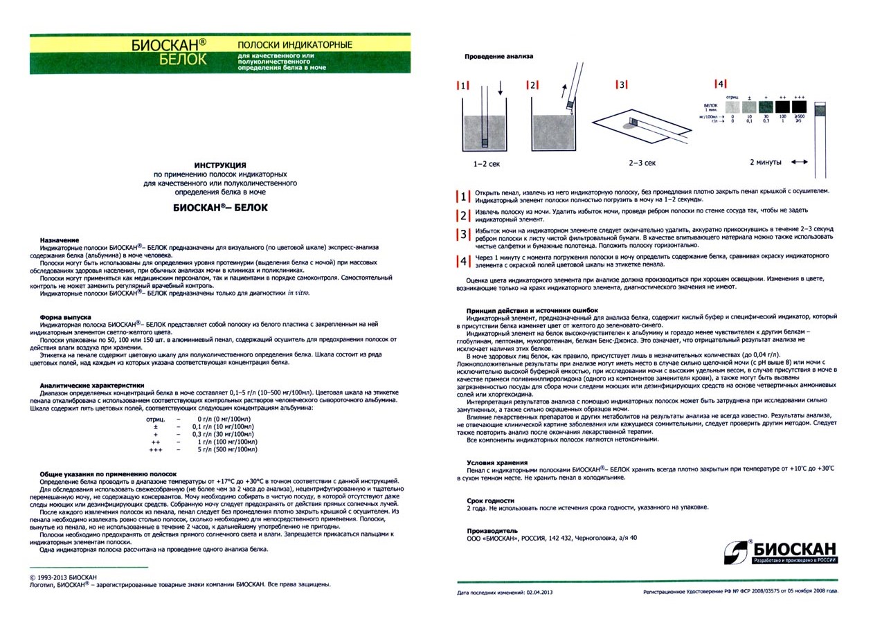 - Полоски индикаторные БИОСКАН-БЕЛОК, с. № 2541Р от 10.2025
