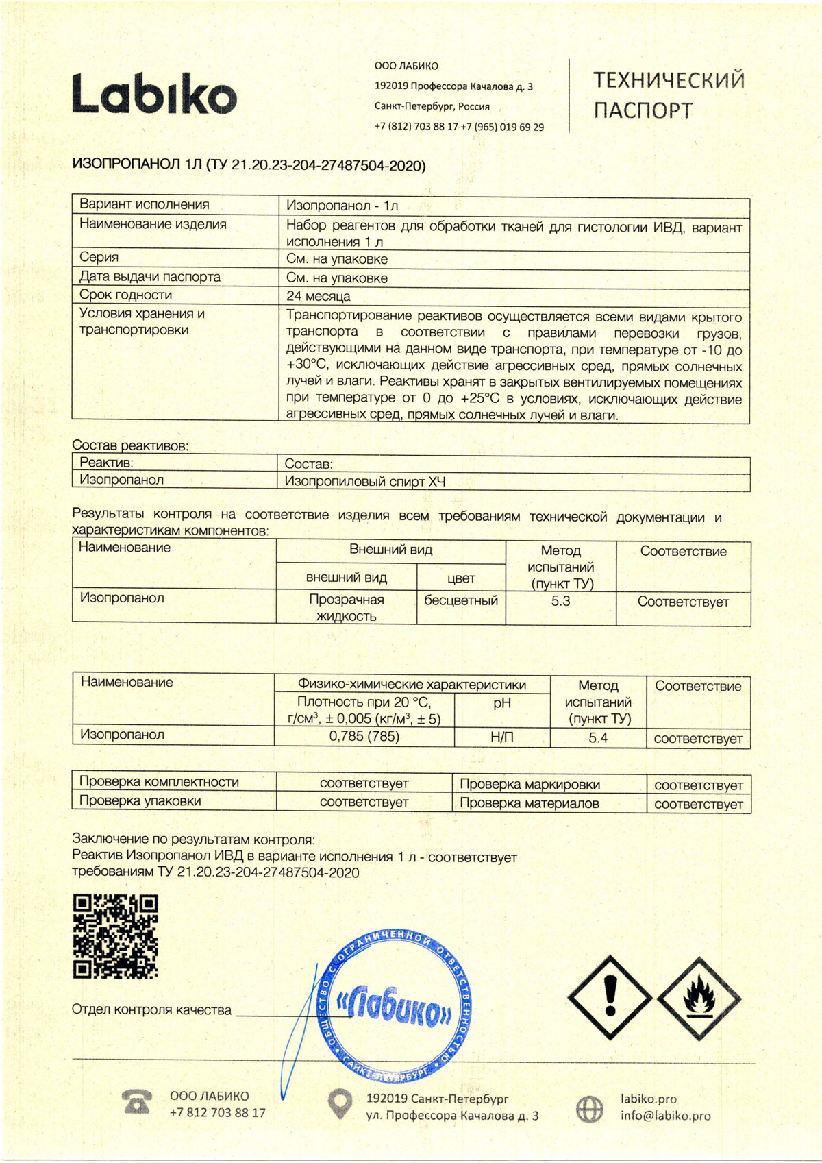 - Изопропиловый спирт хч - 1 л. Лабико
