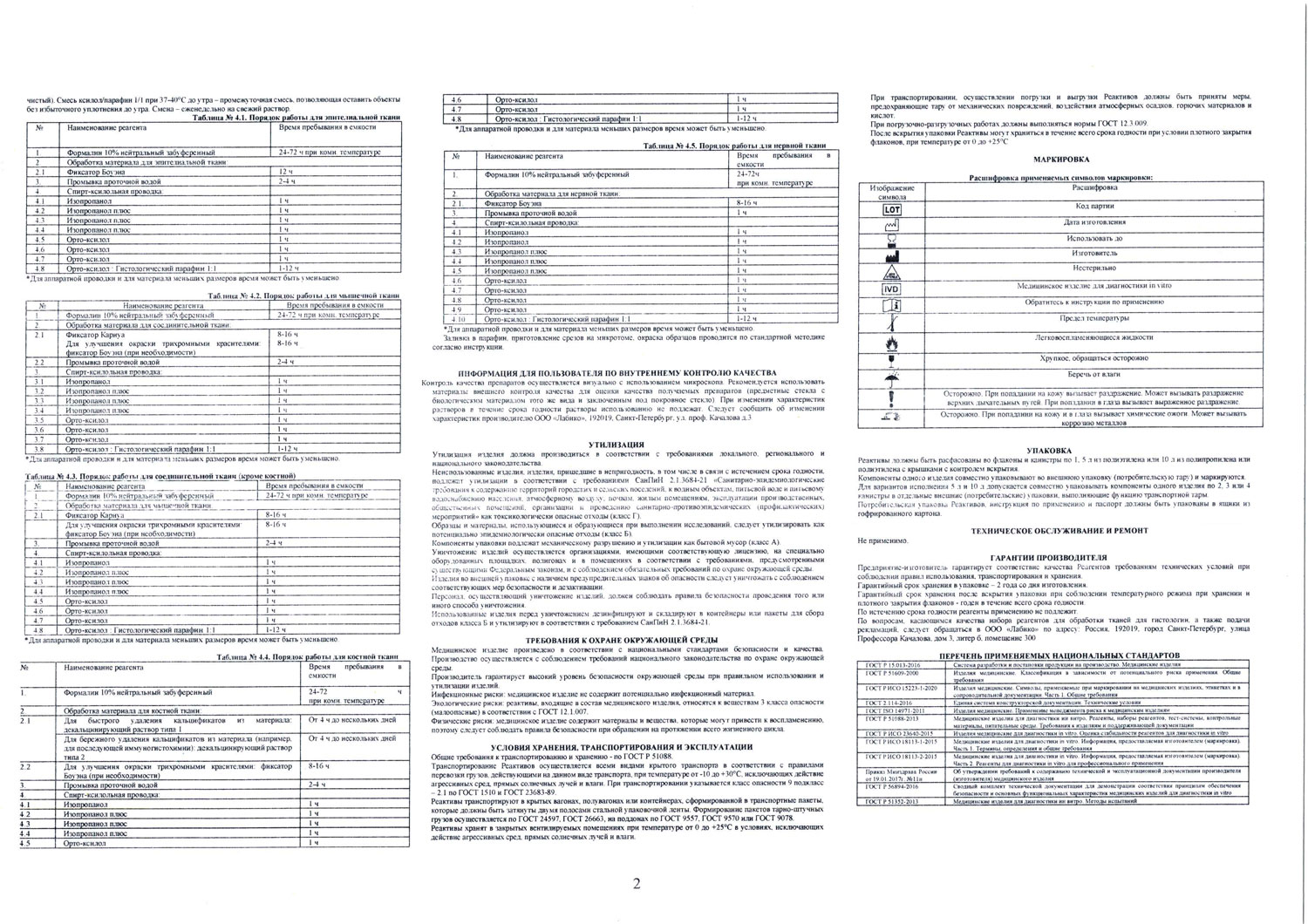 - Набор реагентов для обработки тканей для гистологии ИВД. Инструкция-2