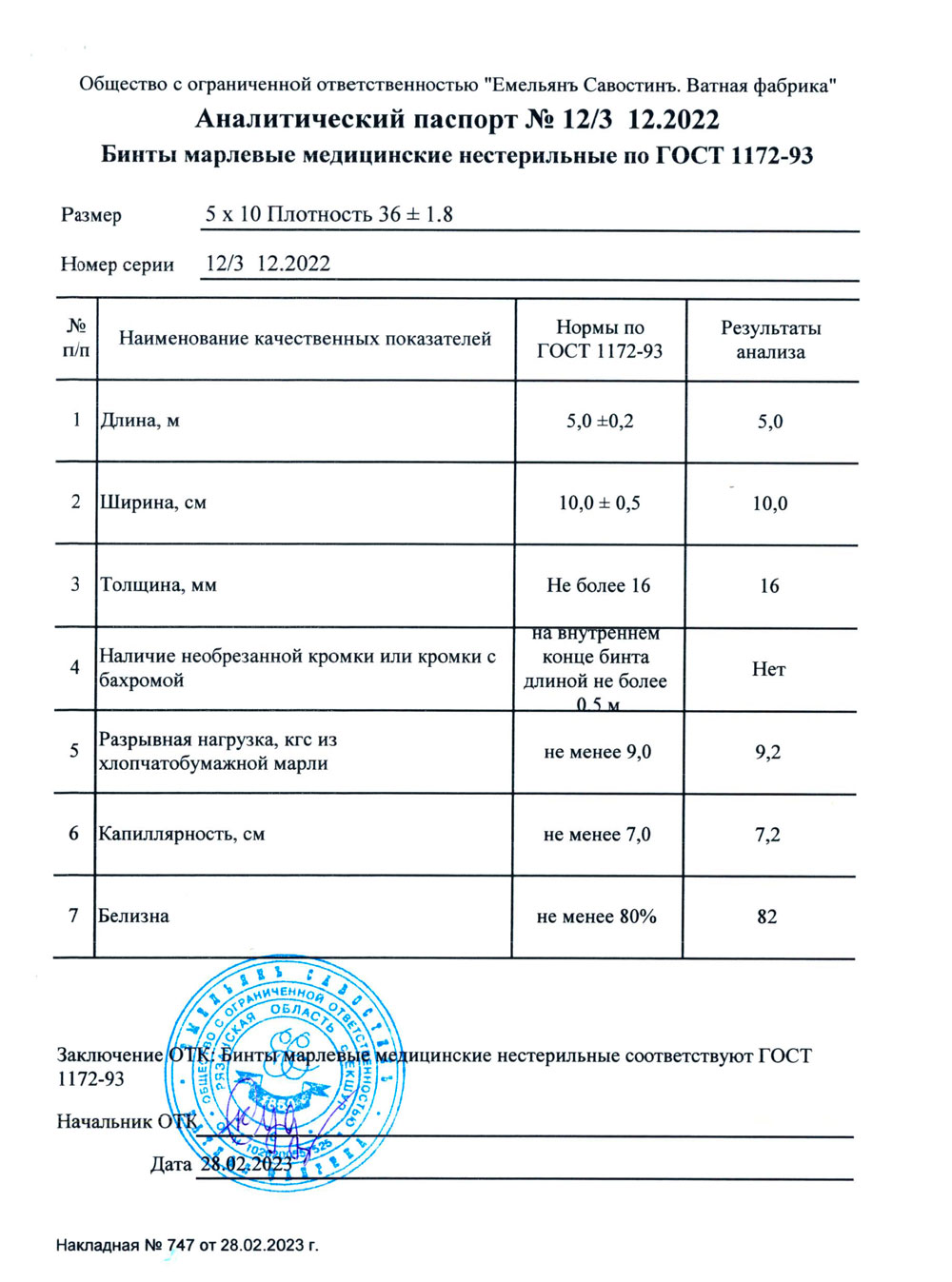 - Бинт марлевый медиц. нестерильный 5х10, п. 12-3 от 12.2022
