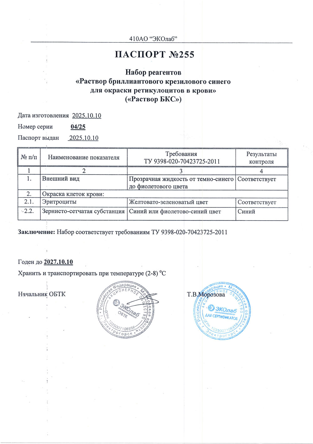 - Раствор БКС. Эколаб, п. 04-25 от 10.10.2025