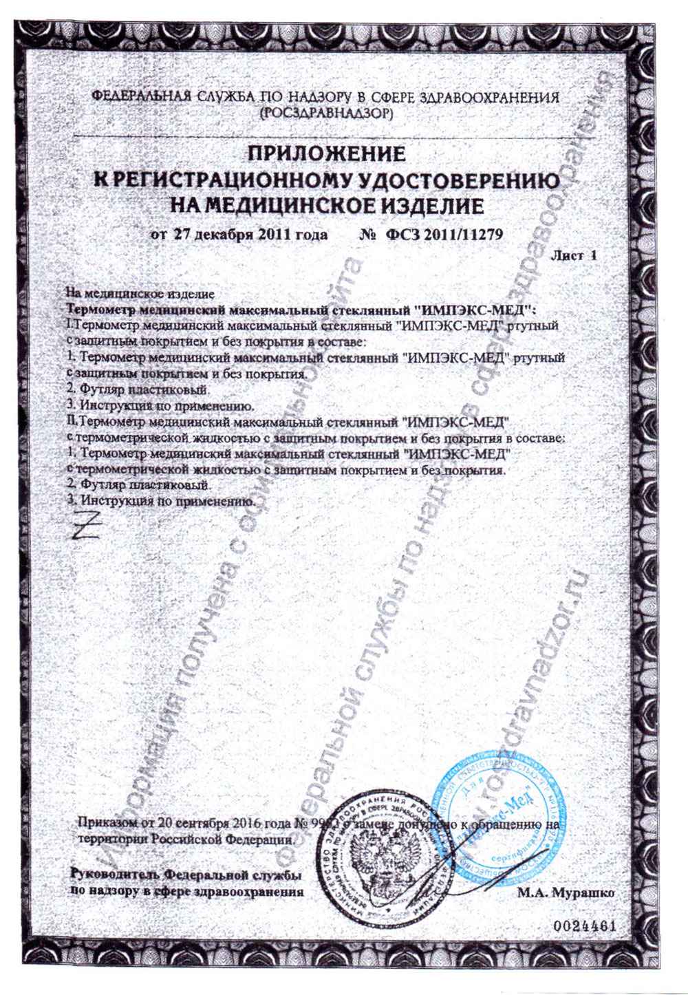 РУ № ФСЗ 2011/11279 от 27.12.2011 г.