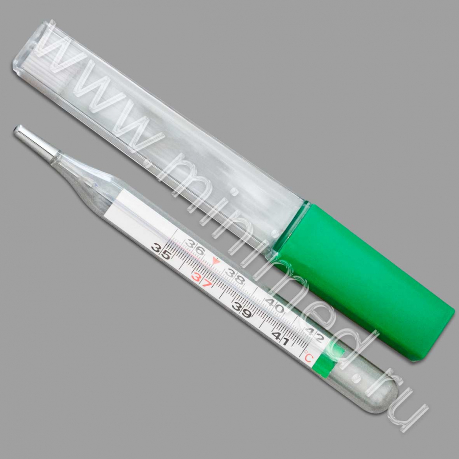 Термометр медицинский максимальный стеклянный с термометрической жидкостью (без ртути), в пласт. футляре