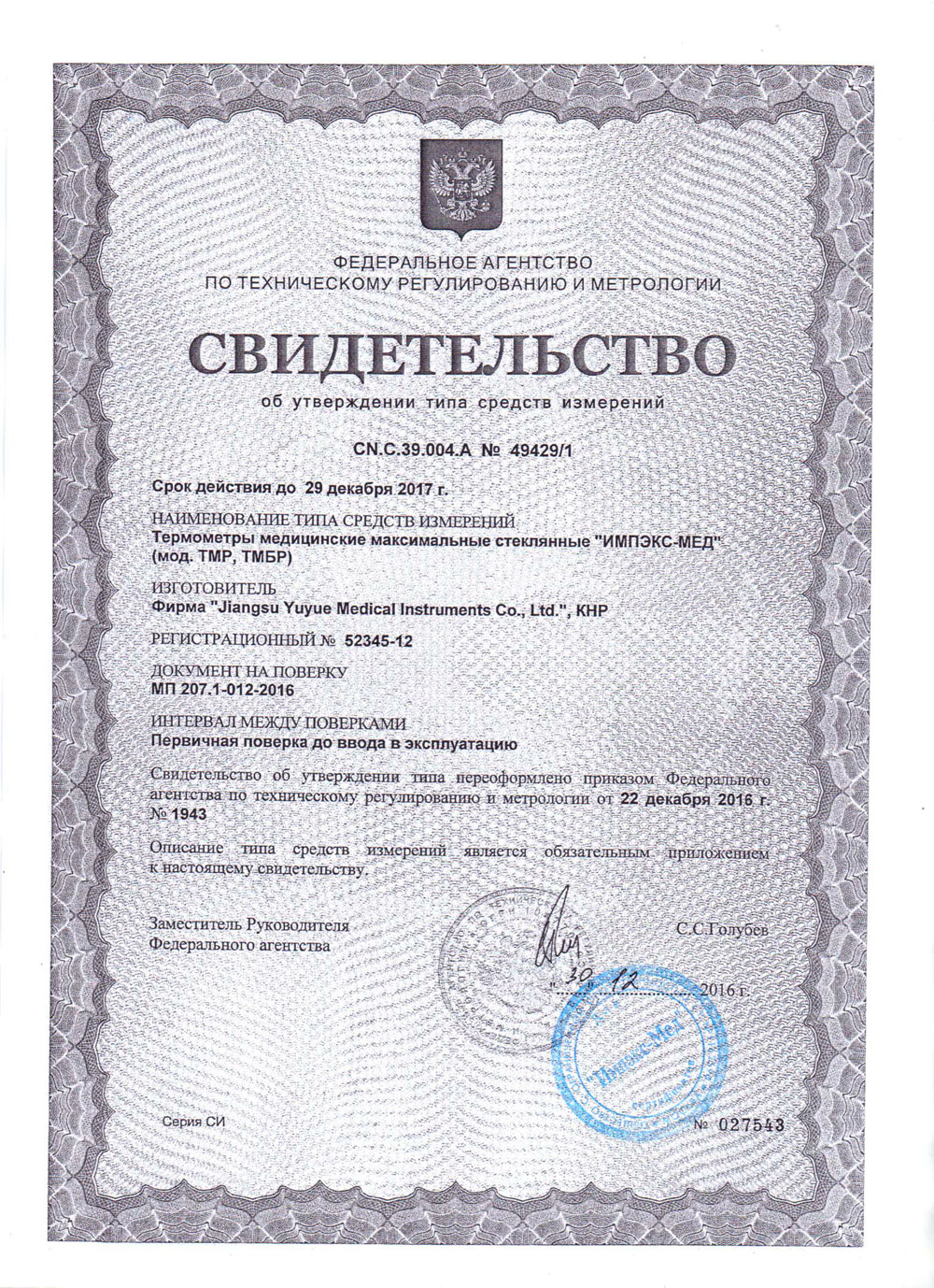 - Термометр-медицинский-максим.-стеклянный-Цзянсу. Свидетельство-ТСИ.-2