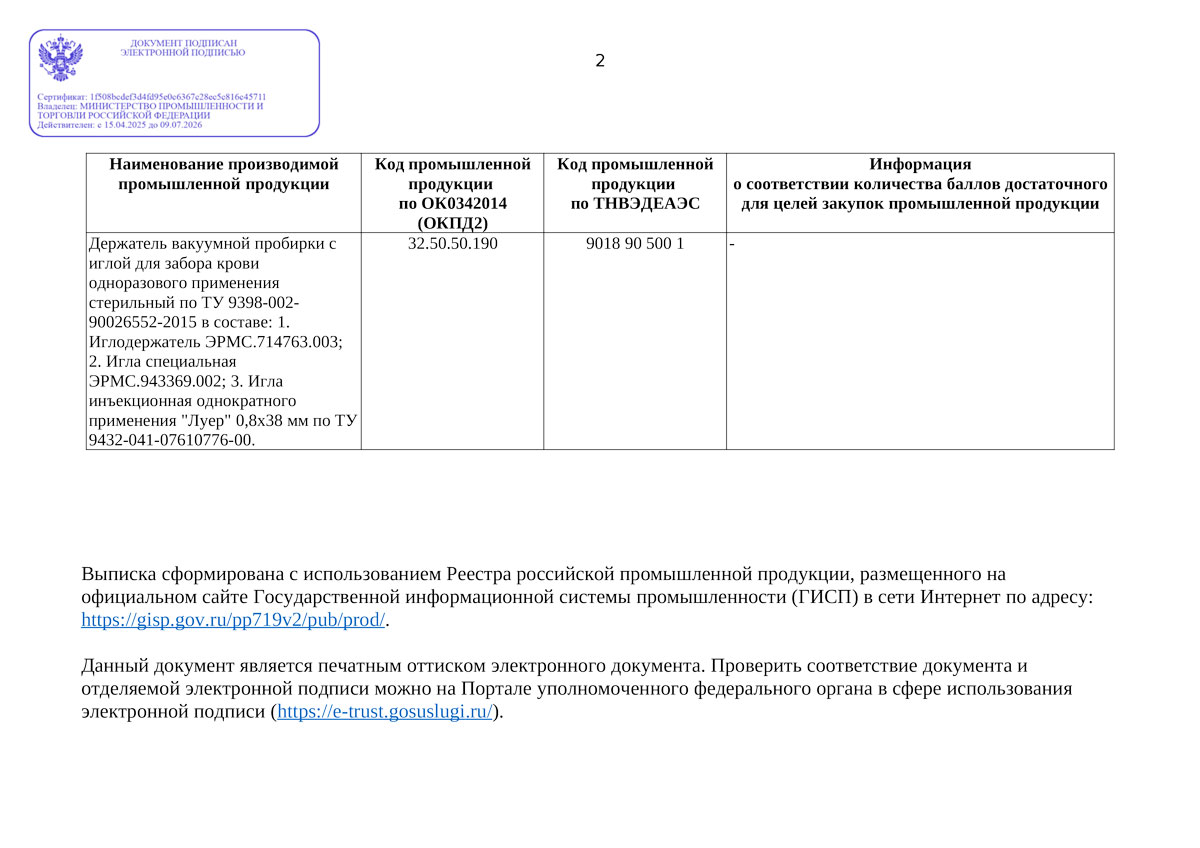 - Держатель вакуумной пробирки с иглой стер. ООО Эрмайнс. Выписка из РРПП до 06.10