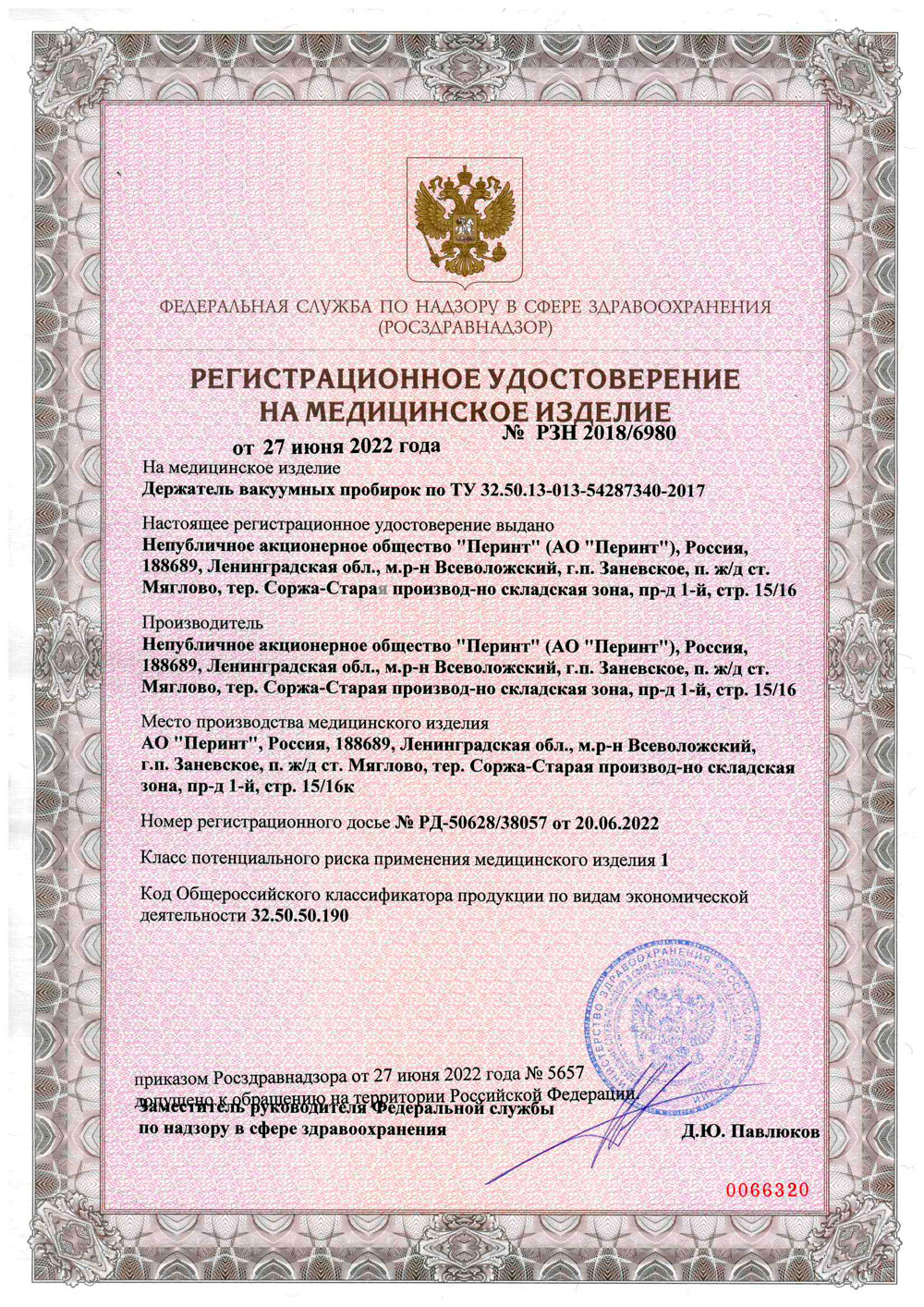 - Держатель вакуумных пробирок. Перинт. РУ 2022