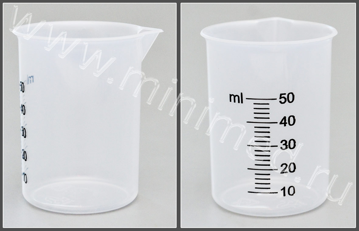 Предназначен для отмеривания ориентировочного объема веществ и иных процедур с нелетучими жидкостями. Стакан с носиком и градуировкой, выполненной методом печати.