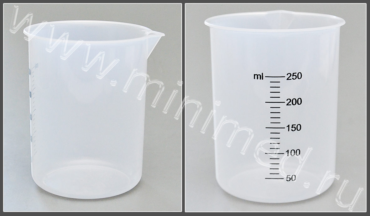 Предназначен для отмеривания ориентировочного объема веществ и иных процедур с нелетучими жидкостями. Стакан с носиком и градуировкой, выполненной методом печати.