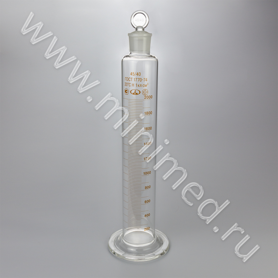 Цилиндр 2-2000-1 мерный с пришлиф. пробкой на стекл. основании, 1 класс, ГОСТ 1770-74, МиниМедПром, инд.уп./6 шт.
