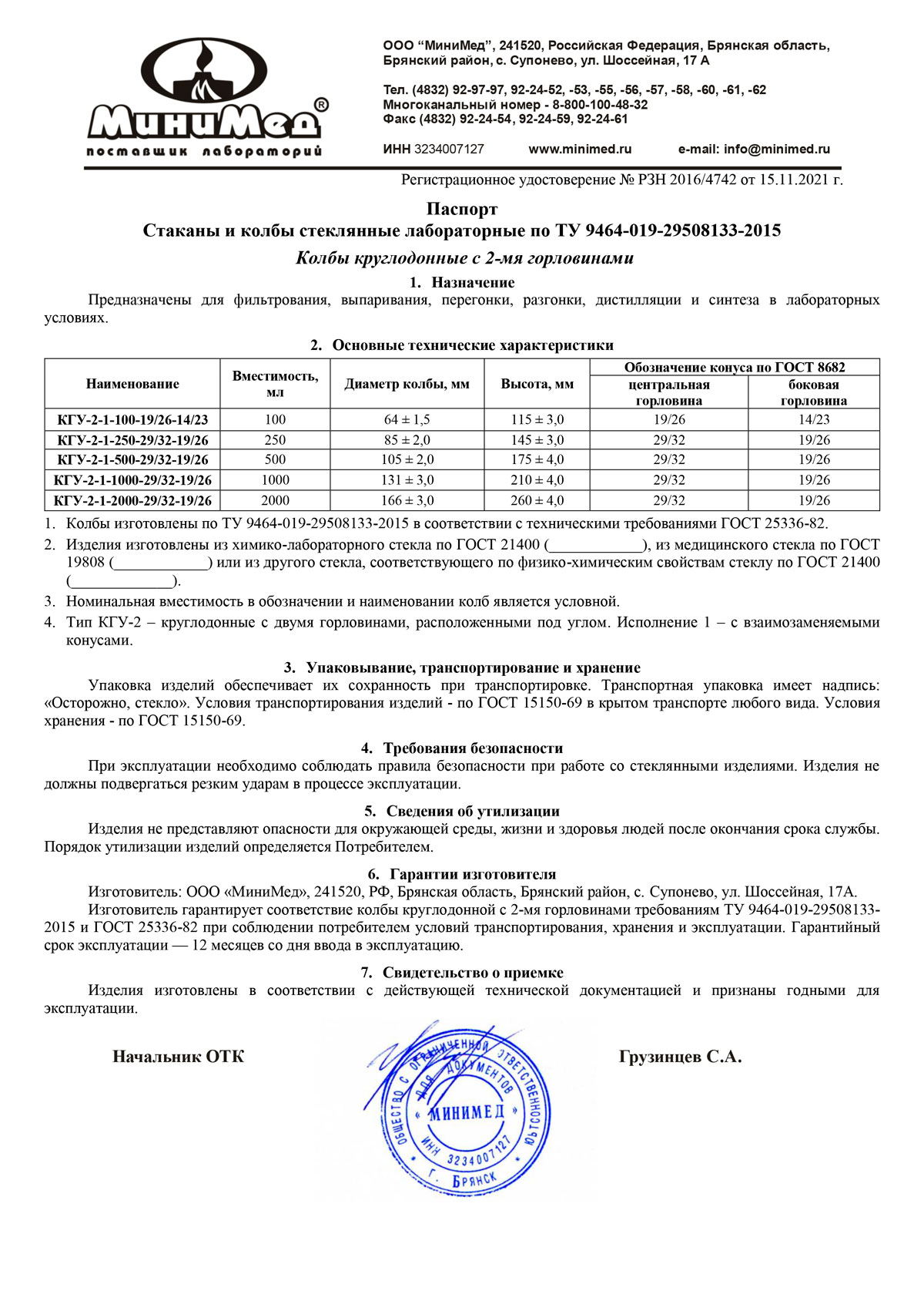 - Стаканы и колбы стеклянные лабораторные. МиниМед. Беларусь. РУ-2