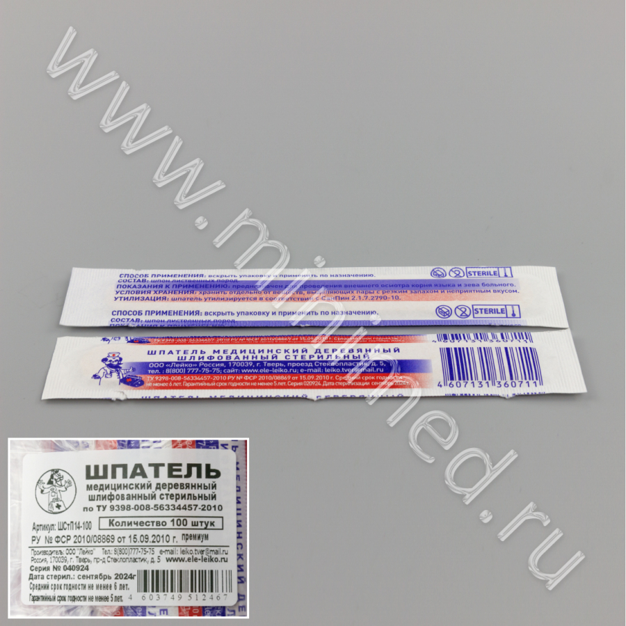 - Шпатель медицинский деревянный шлифованный стерильный. ООО Лейко. РУ
