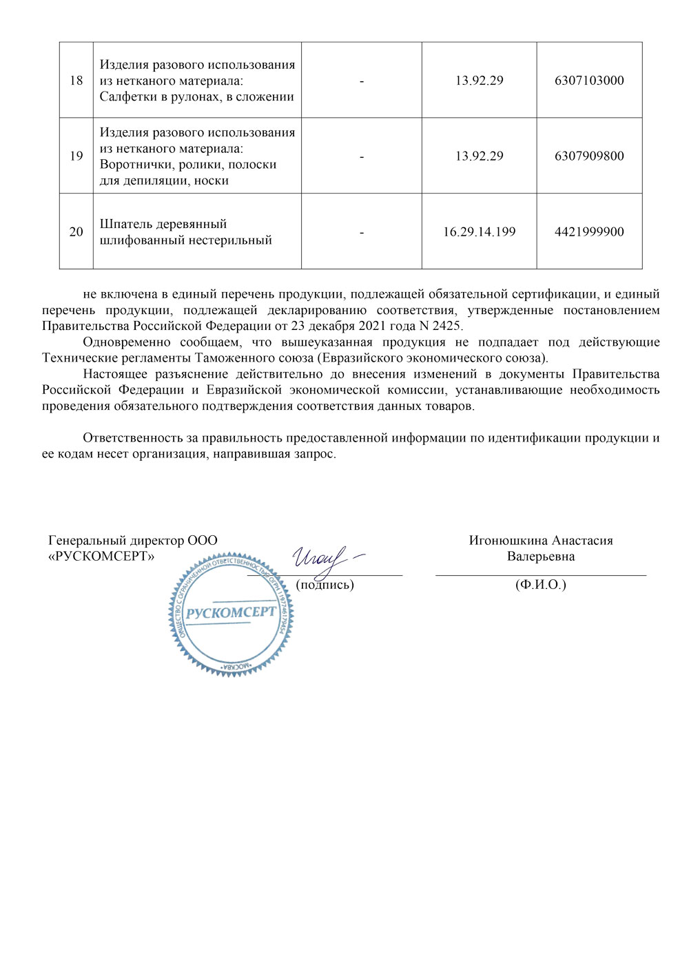 - Шпатель мед. дерев. шлифов. стер. Лейко. Письмо об отсутствии необходимости декл
