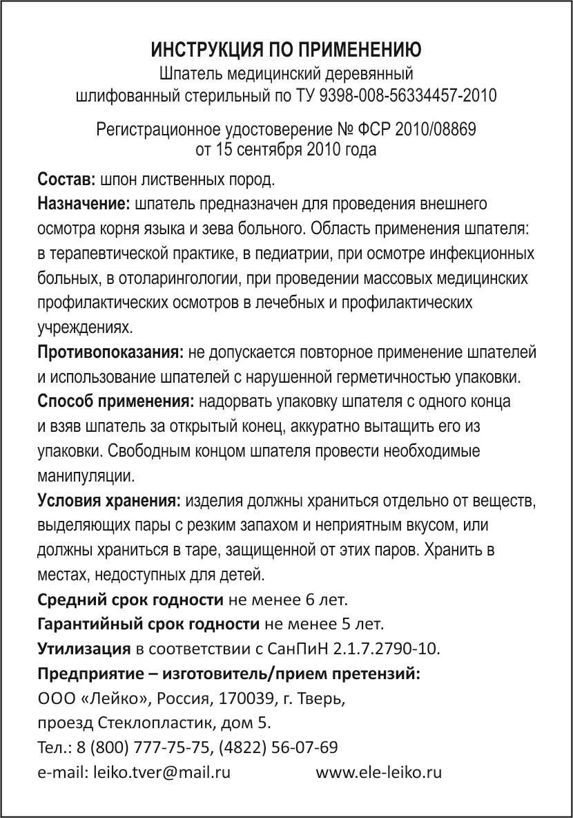 - Шпатель медицинский деревянный шлифованный стерильный. Инструкция