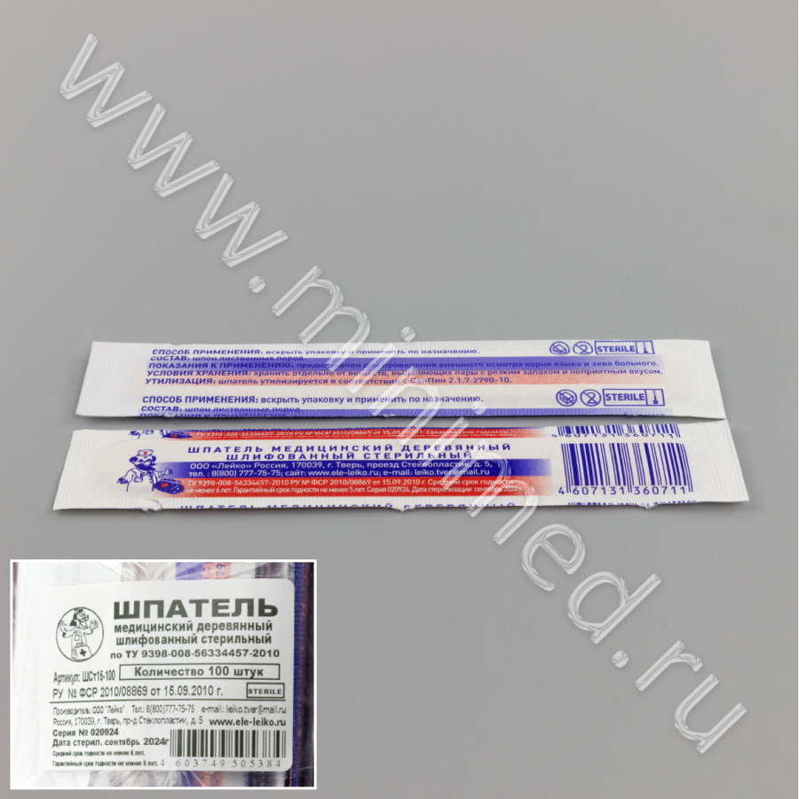 - Шпатель медицинский деревянный шлифованный стерильный. ООО Лейко. РУ