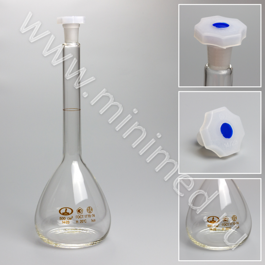 Колба 2а-500-1 мерная, с пробкой, 1 класс, ГОСТ 1770-74, инд.уп./32 шт., МиниМедПром