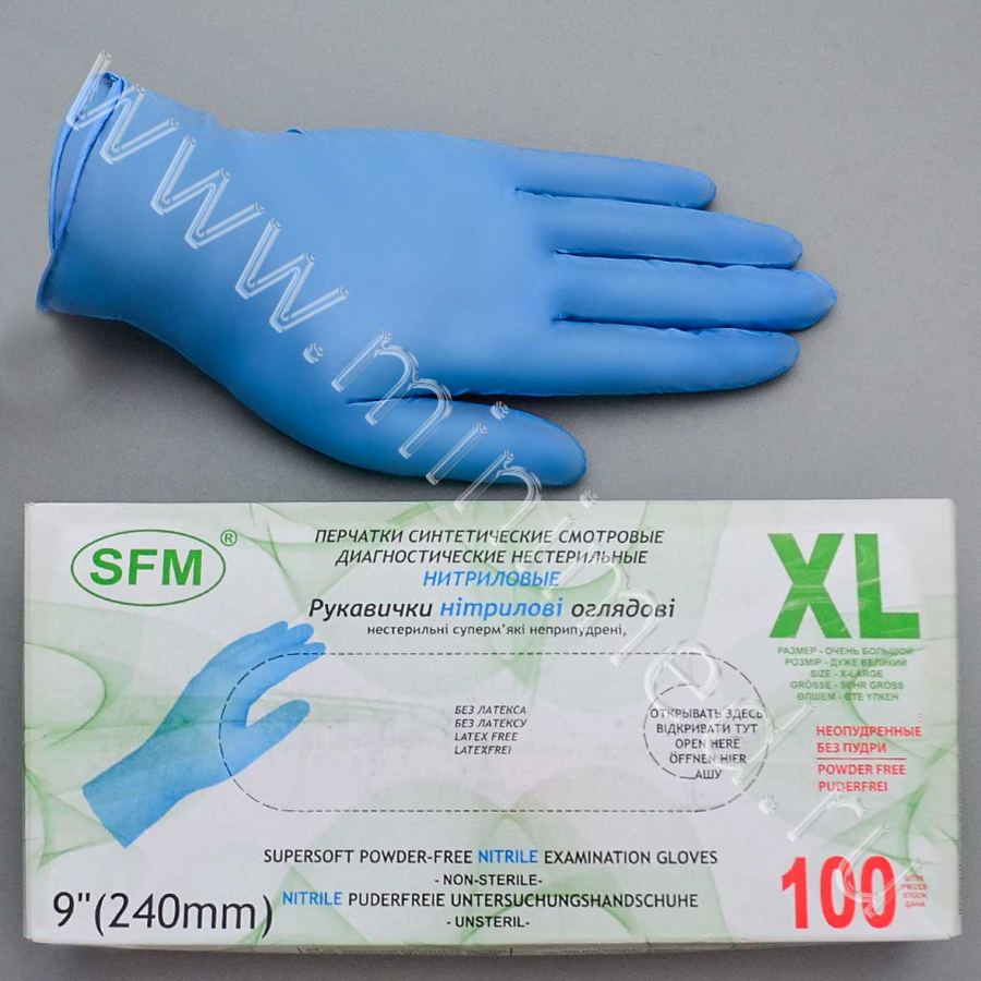 Перчатки-ХL нитриловые синтетические диагностические,текстурир, без пудры " Hospital Prodact, Германия, уп.100/1000 пар