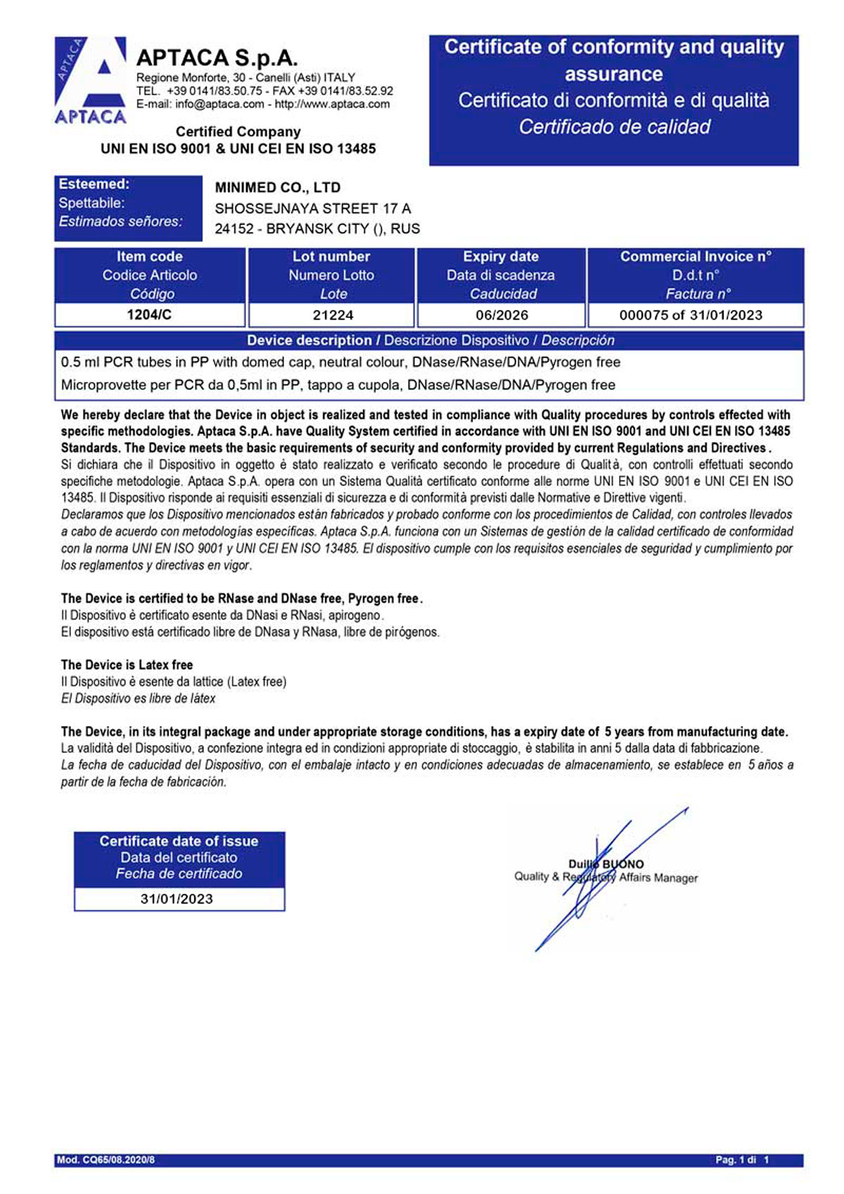 Предназначена для проведения ПЦР-анализа. Пробирка изготовлена из особо чистого полипропилена. Оптически прозрачная. Имеет выпуклую крышку легко маркируемую и прокалываемую. Однородная тонкостенная пробирка обеспечивает точное и равномерное нагревание и охлаждение в термоциклере. Автоклавируется при температуре +121° С в течение 20 минут.