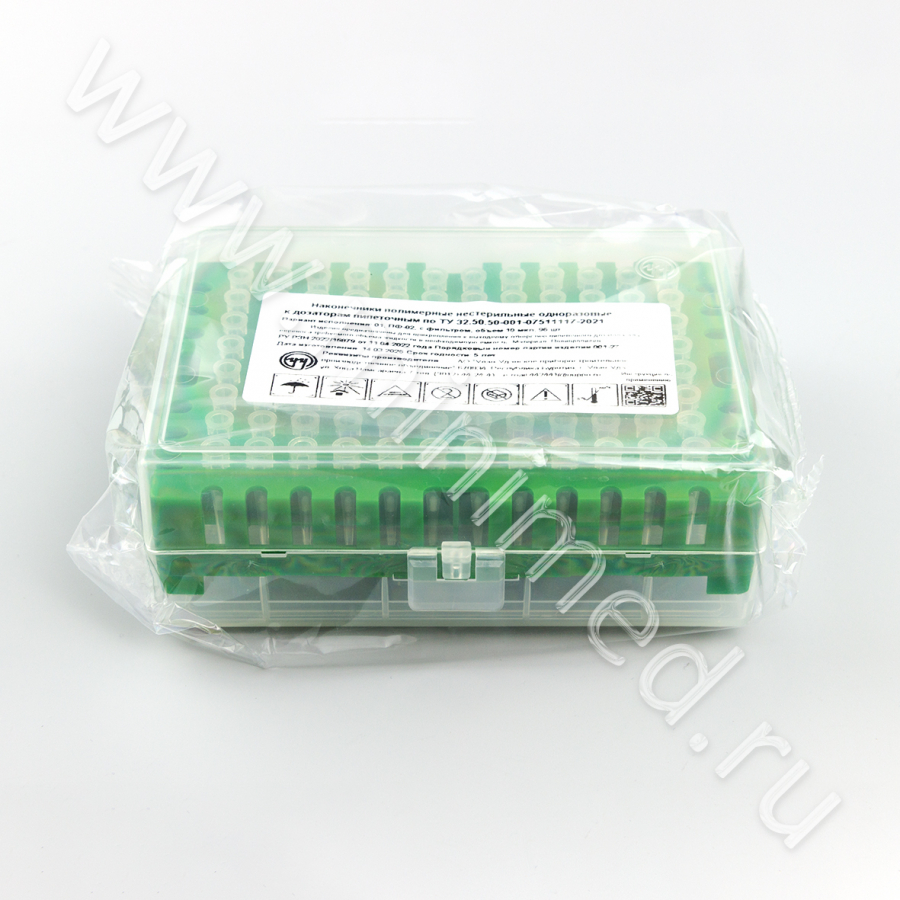Наконечник полимерный нестерильный одноразовый к дозаторам пипеточным по ТУ 32 50 50-001-07511117-2021 с фильтром 0,2-10 мкл, уп.штатив 96 шт, У-У ППО