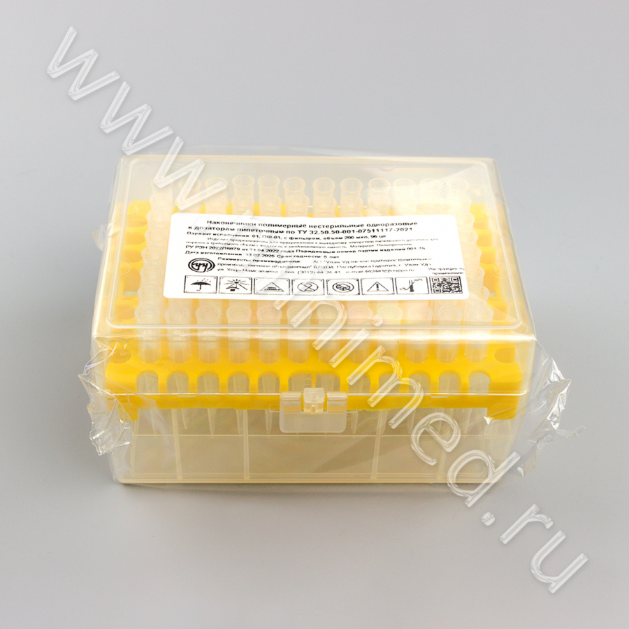 Наконечник полимерный нестерильный одноразовый к дозаторам пипеточным по ТУ 32 50 50-001-07511117-2021 с фильтром 5-200 мкл, уп.штатив 96 шт, У-У ППО