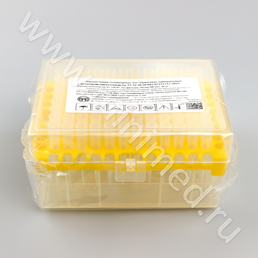 Наконечник полимерный нестерильный одноразовый к дозаторам пипеточным по ТУ 32 50 50-001-07511117-2021 без фильтра 200 мкл, уп.штатив 96 шт, У-У ППО