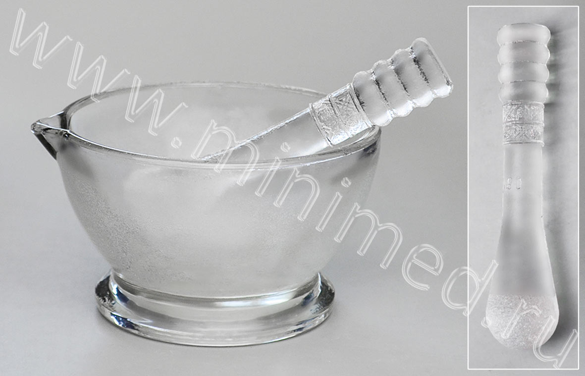 Предназначена для приготовления порошковых смесей. Для более эффективного растирания внутренняя поверхность ступки и шаровая поверхность пестика шероховатые. Изготовлена из химико-лаборатоного стекла.