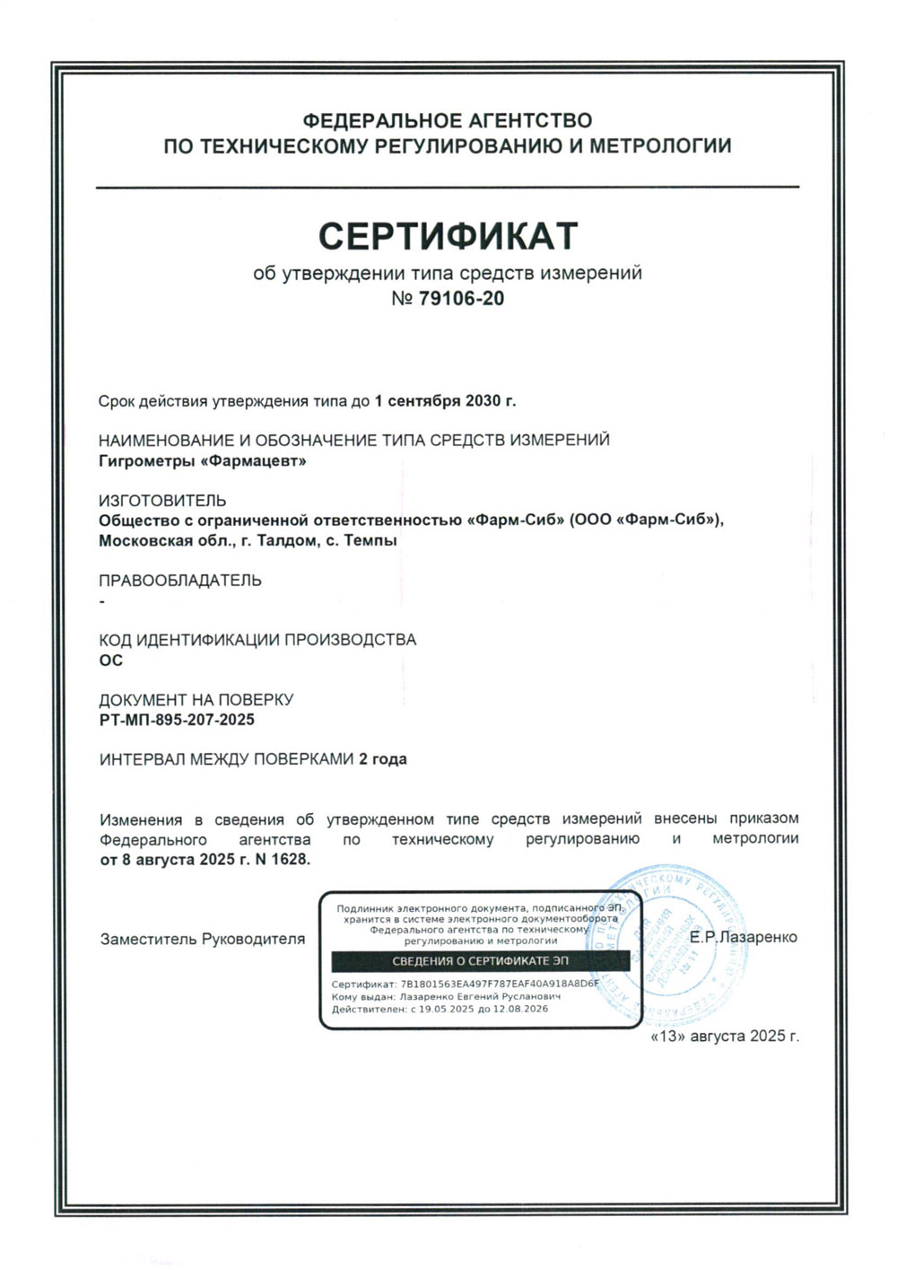 - Гигрометры Фармацевт. СТСИ от 01.09.2030