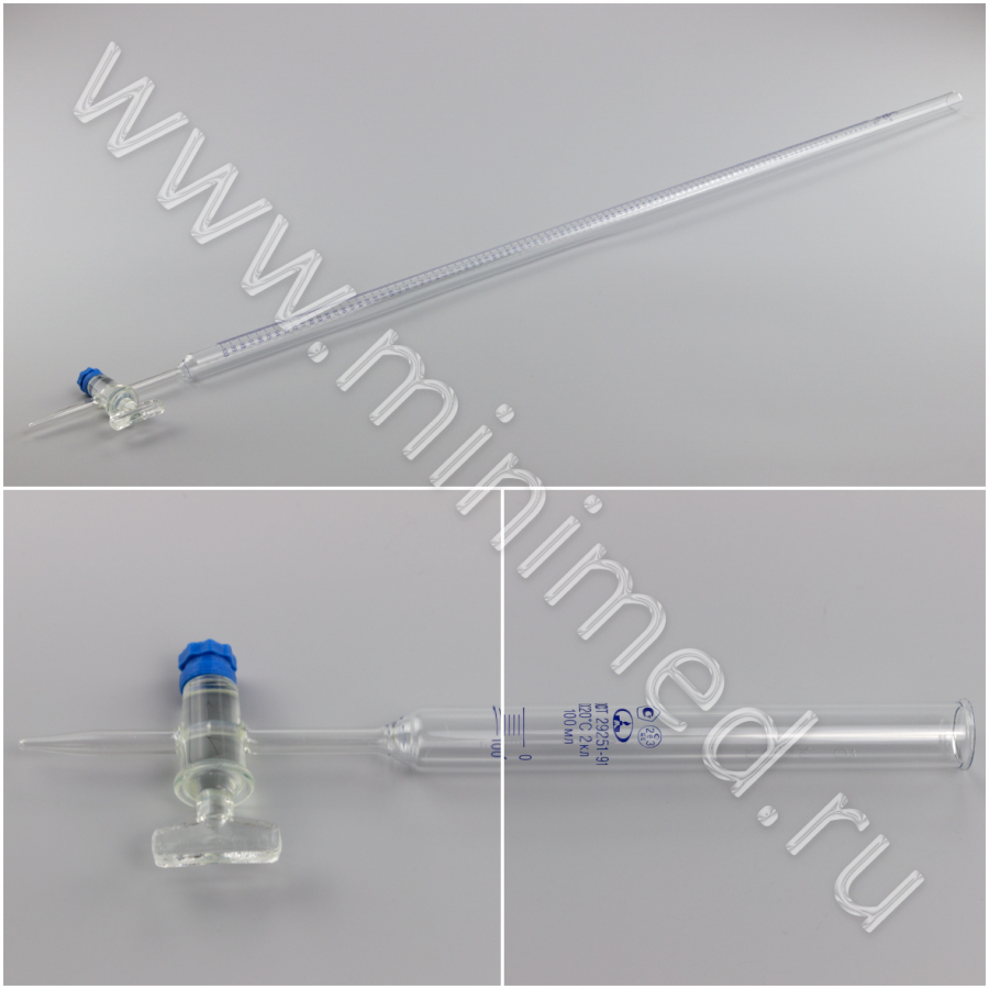 Бюретка 1-1-2-100-0,2 с краном, резьбовым уплотнением, ГОСТ 29251-91, МиниМедПром, уп.3шт