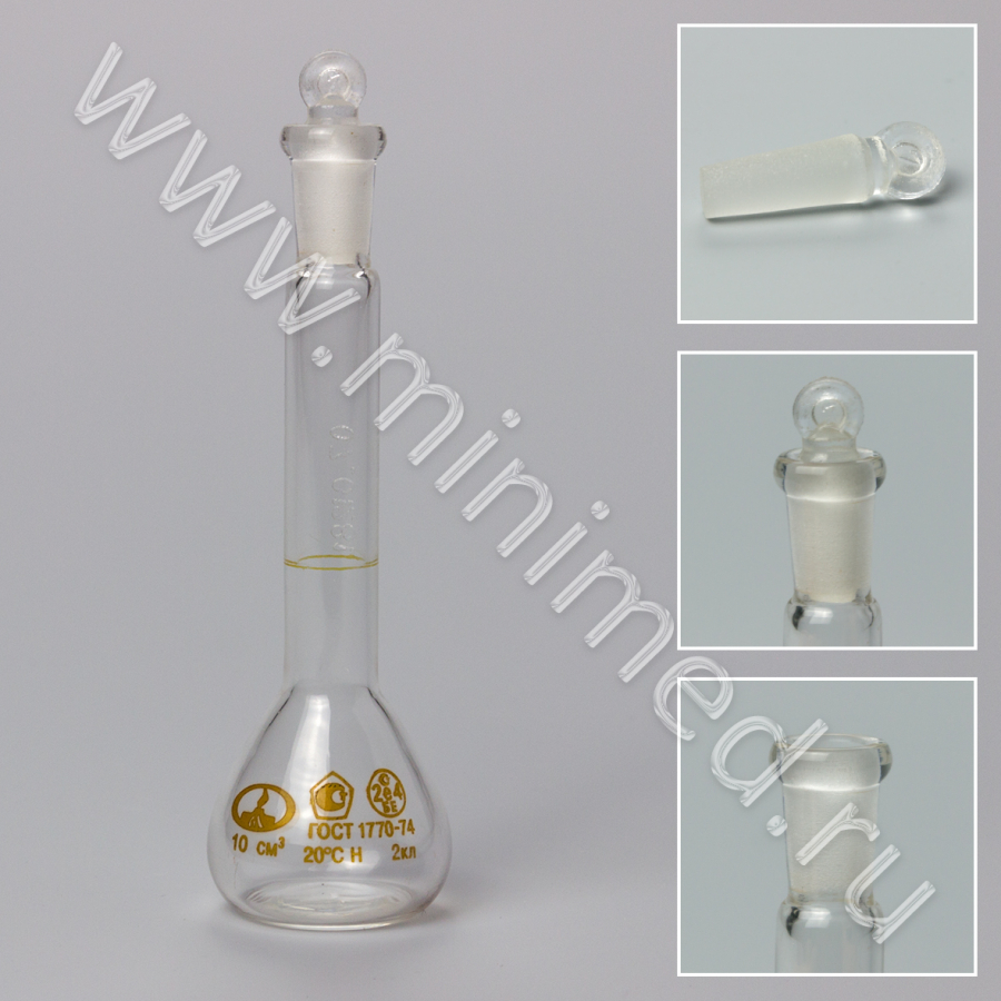 Колба 2-10-2 мерная, с пришлифованной пробкой 7/16, ТУ 9464-013-52876351-2014, ГОСТ 1770-74, МиниМедПром, уп.12/288,