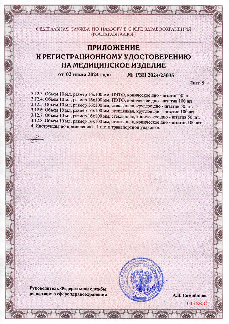 - Пробирки вакуумные МиниМед для сбора проб мочи стерильные. РУ-9