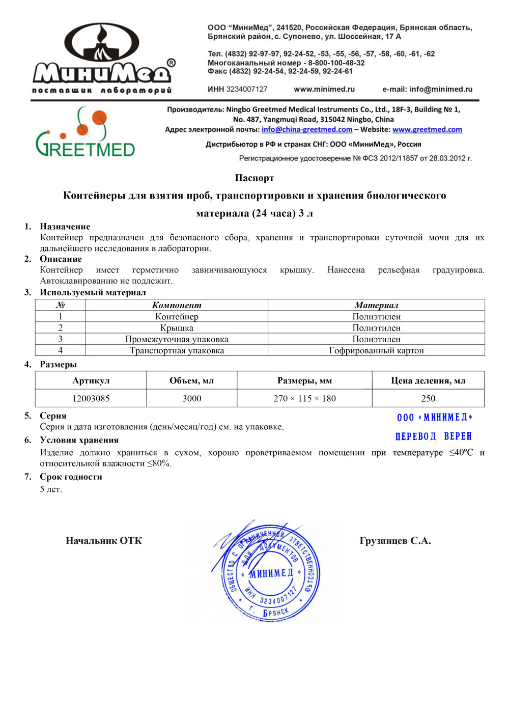Материал контейнера.................. полиэтилен