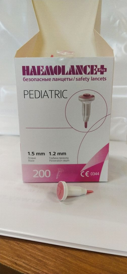 Ланцет Heamolance Plus Pediatric, глубина разреза 1,2мм, лезвие1,5 мм, розовый, уп.200шт