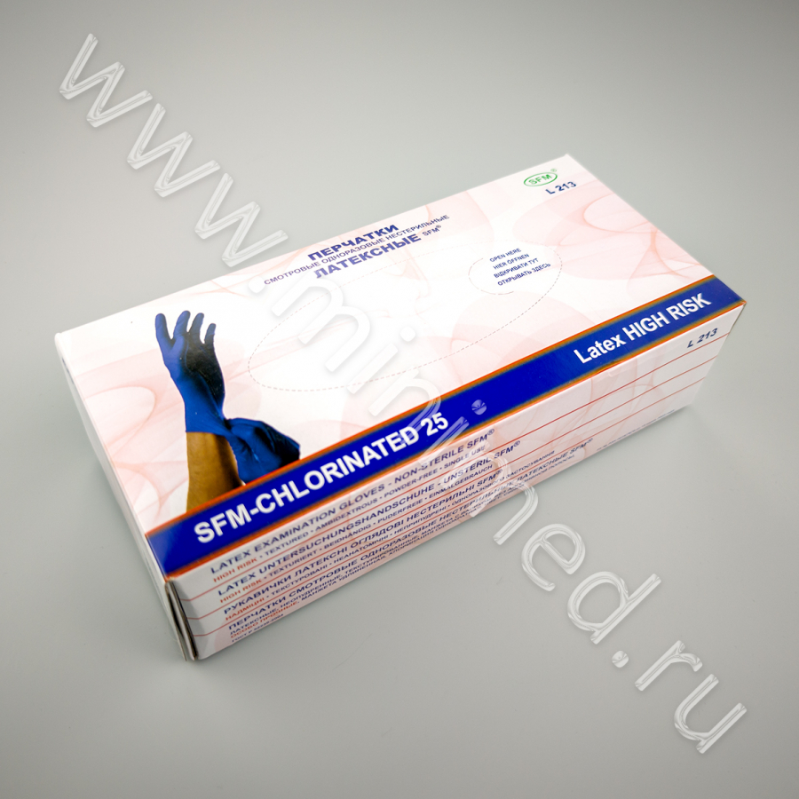 - Перчатки смотровые одноразовые нестерильные латексные SFM. Германия. РУ-2