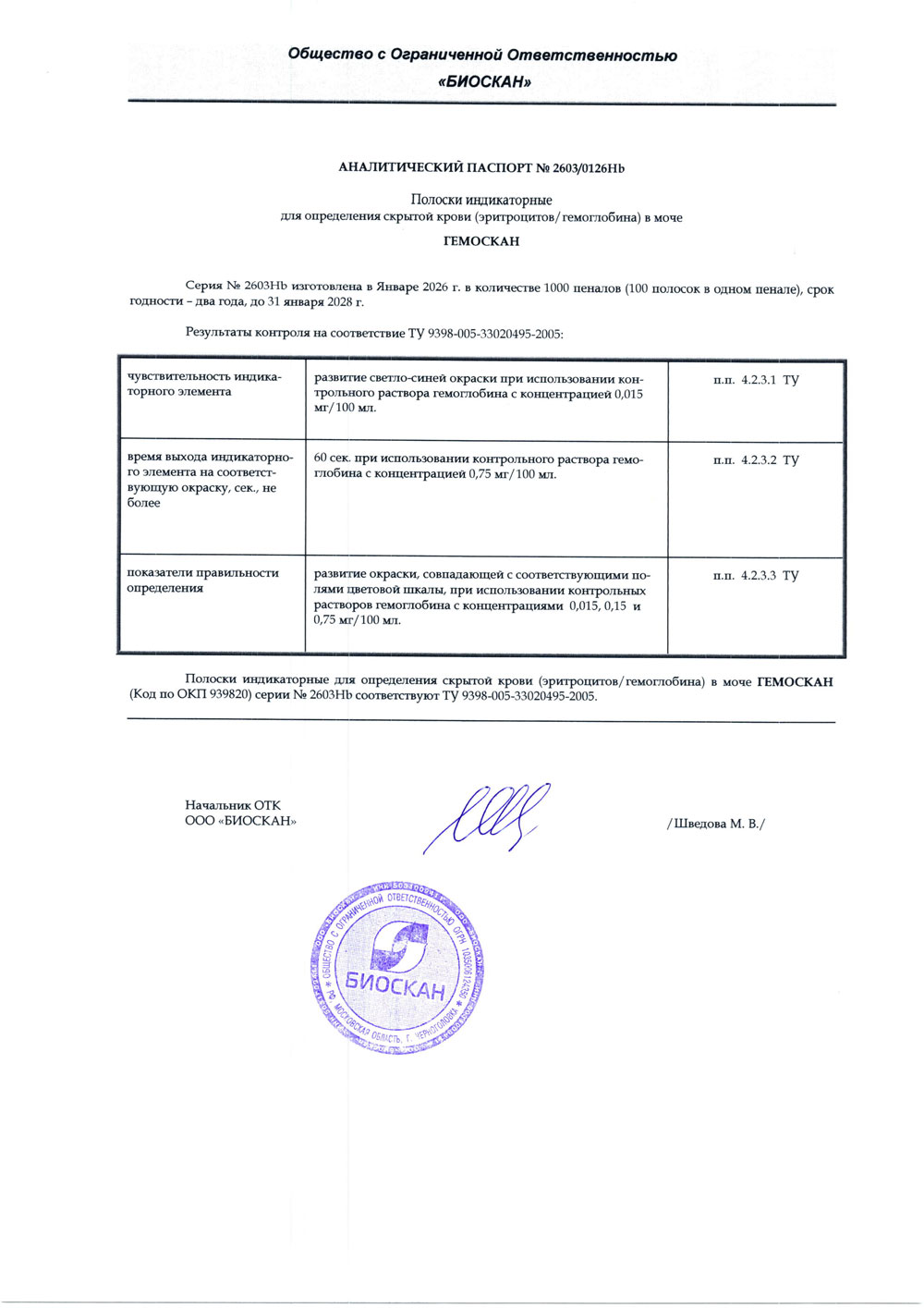 - Полоски индикаторные ГЕМОСКАН, с. № 2603Hb от 01.2026
