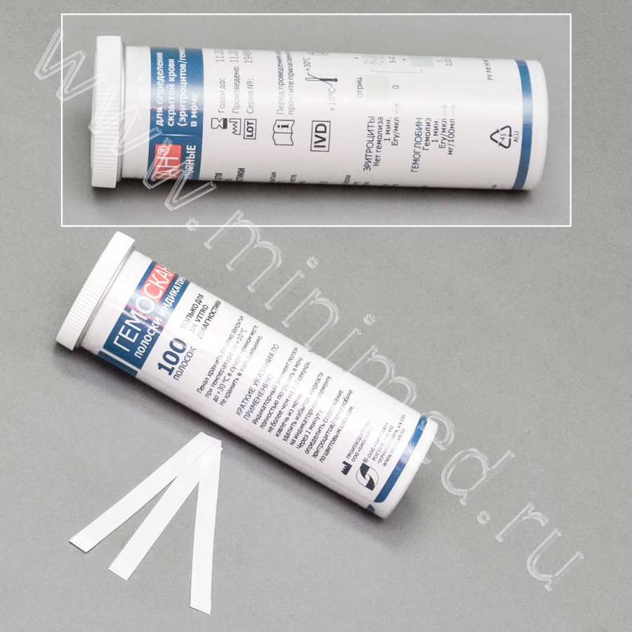 Полоски индикаторные для определения скрытой крови (эритроцитов/гемоглобина) в моче (БИОСКАН® — Гемоскан) уп. 100шт
