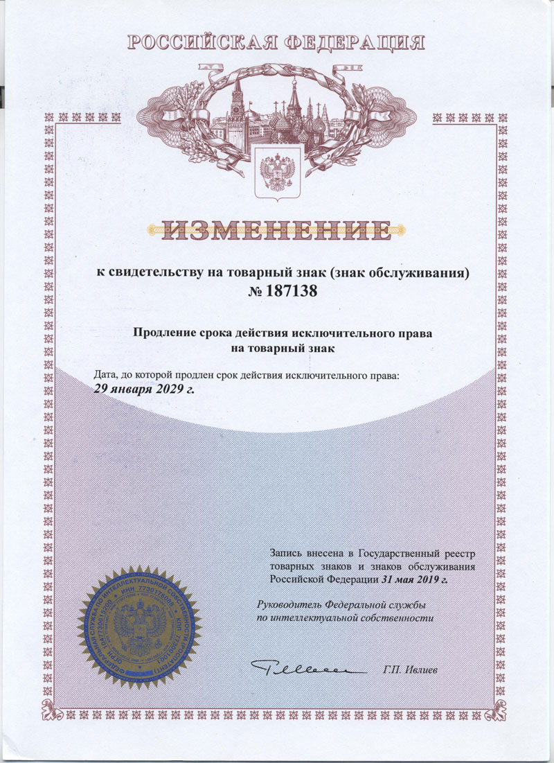 - БИОСКАН. Первичная регистрация товарного знака-3. Продлен до 29.01.2029 г.