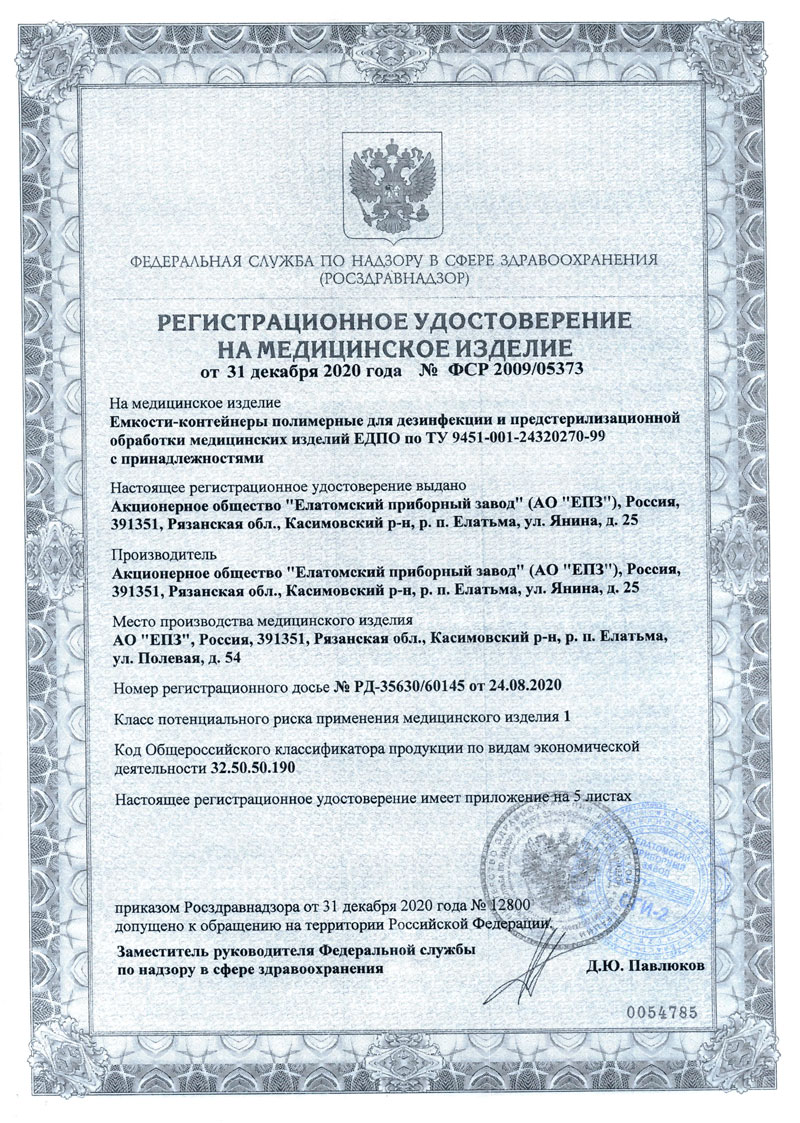 РУ № ФСР 2009/05373 от 31.12.2020 г.