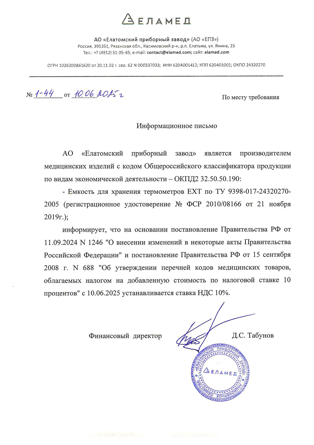 - Мед. изделия. АО Еламед. Инф. письмо о НДС-1