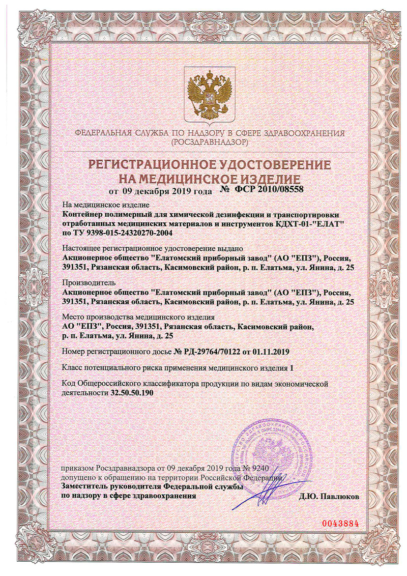 РУ № ФСР 2010/08558 от 09.12.2019 г.