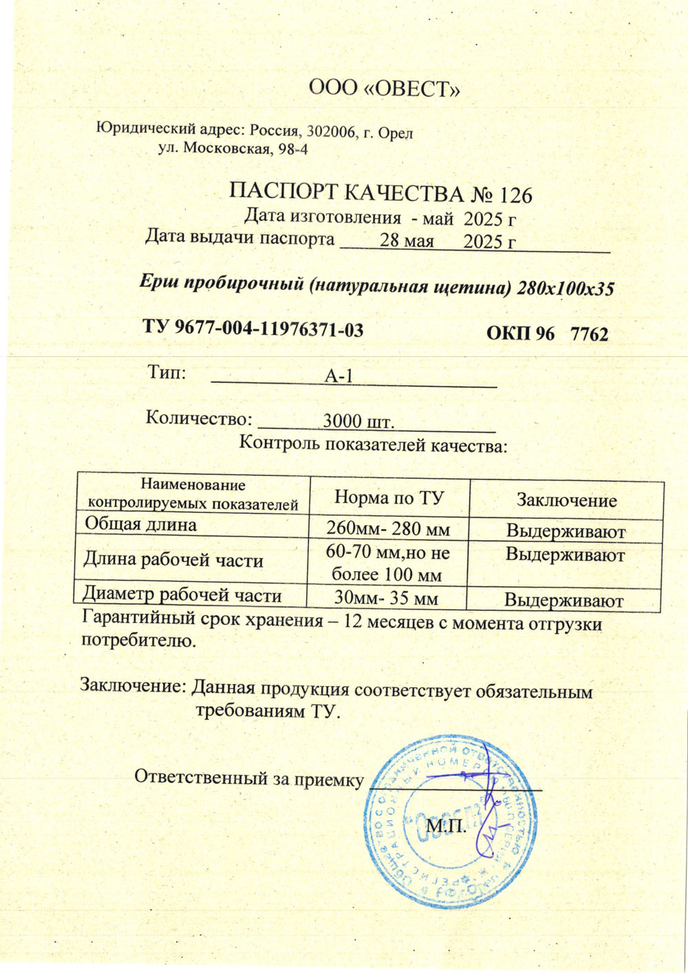 - Ерш пробирочный натуральная щетина 280х100х35 от 03.2025
