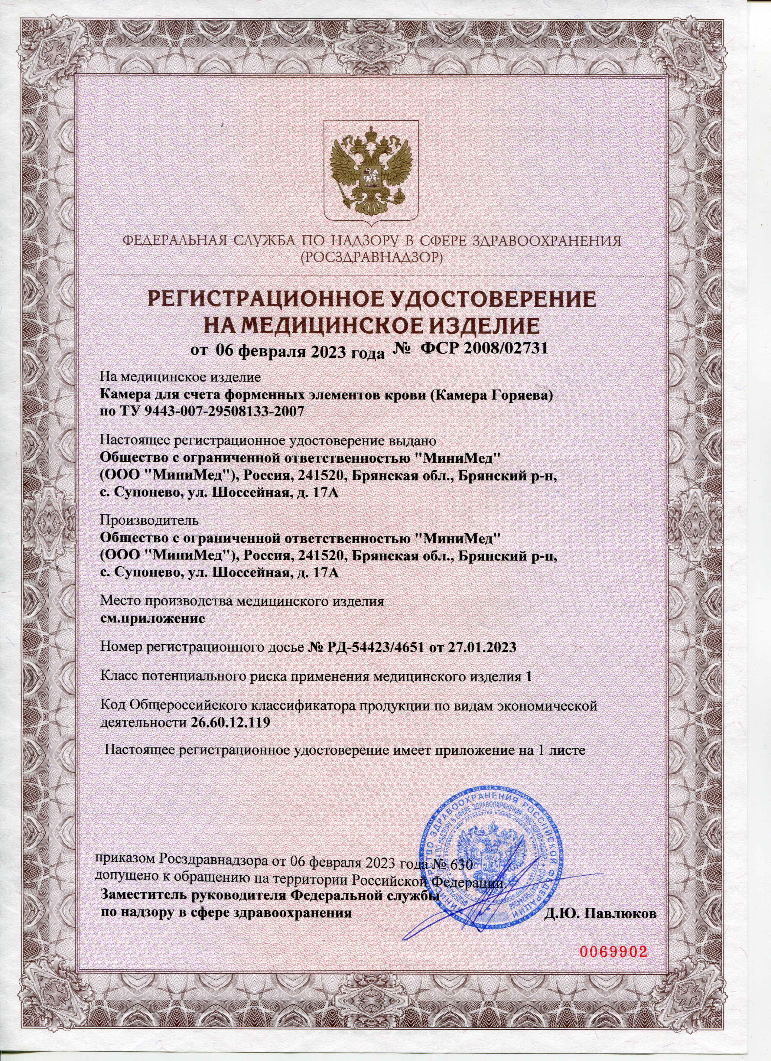 - Камера для счета форменных эементов крови-Камера Горяева-МиниМед. Беларусь. РУ