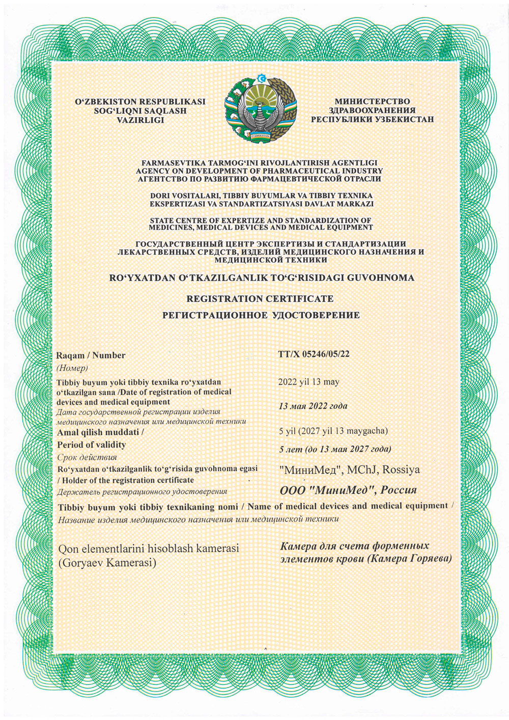 - Камера Горяева. Республика Узбекистан. Рег. удост. до 13.05.2027-2
