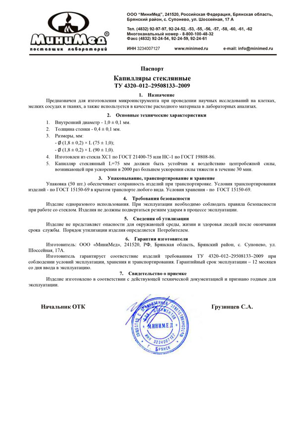 Капилляры стеклянные применяются в качестве расходного материала при проведении лабораторных анализов. Изготовлены из стекла НС-1 по ГОСТ 19808-86.