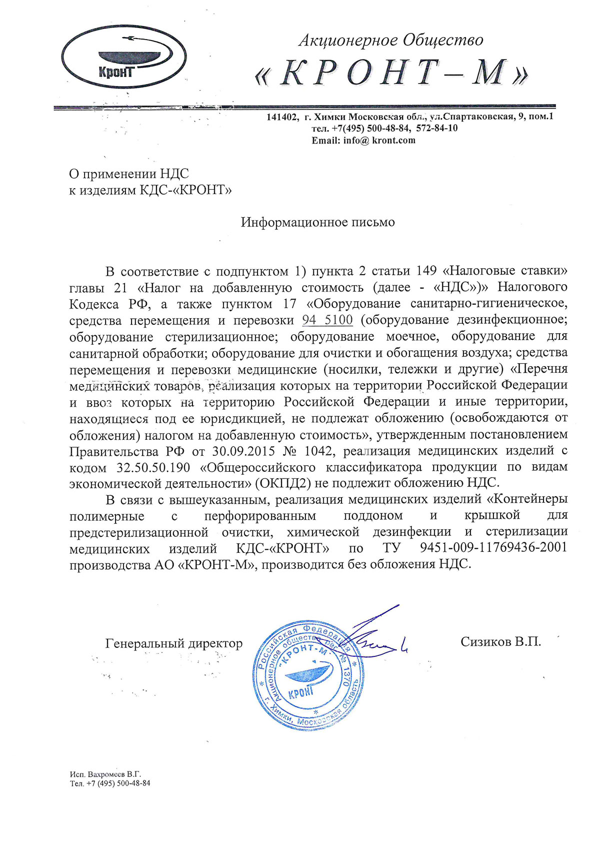 - Контейнеры КДС-КРОНТ. АО КРОНТ-М. Инф. письмо о применении НДС