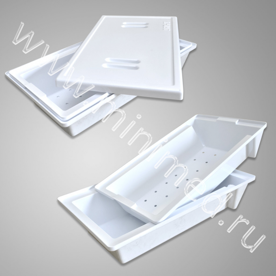 Предназначен для предварительного замачивания и дезинфекции изделий медицинского назначения (габаритные хирургические инструменты, наркозо-дыхательная аппаратура). Изготовлен из ударопрочного, химически стойкого полистирола. Крышка контейнера надежно защищает медицинский персонал от вредных испарений.
