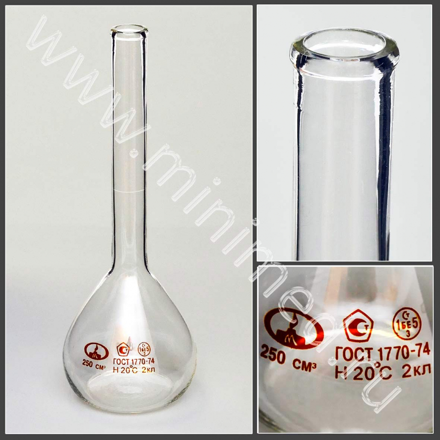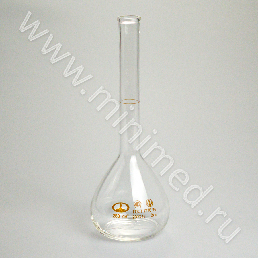 Колба 1-250-2 мерная, ТУ 9464-013-52876351-2014, ГОСТ 1770-74, МиниМедПром, уп.2 / кор.72 шт,