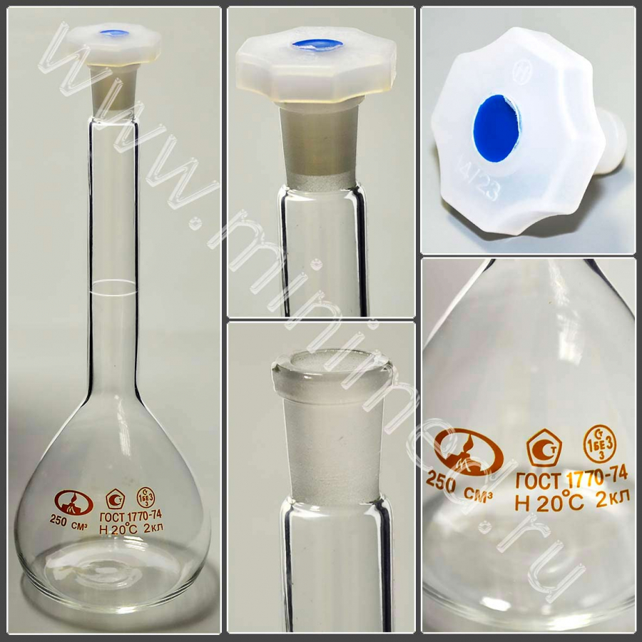 Колба 2а-250-2 мерная, с пробкой, ТУ 9464-013-52876351-2014, ГОСТ 1770-74, МиниМедПром, уп.2 шт./кор.72 шт